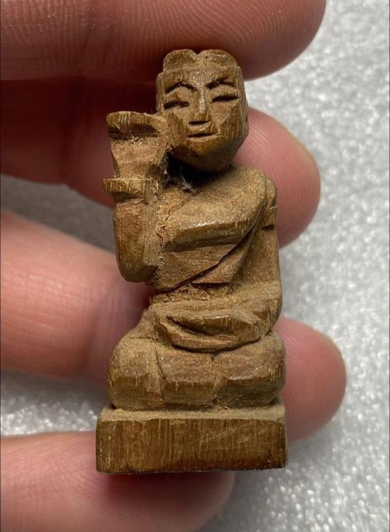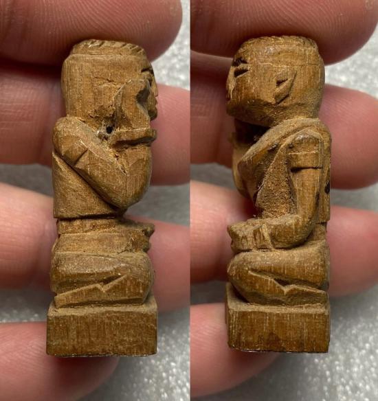 แม่นางกวัก ไม้แกะ (ไม่ทราบสำนัก) ขนาดสูง ๔.๒ ซม. กว้าง ๑.๘ ซม. ใต้ฐานมีรอยกาว เคยติดตั้งหน้ารถมาก่อนครับ ใครชอบหรือทราบที่เชิญนะครับ
