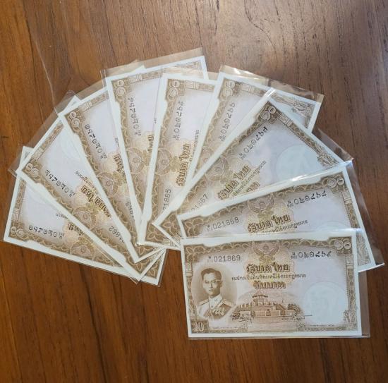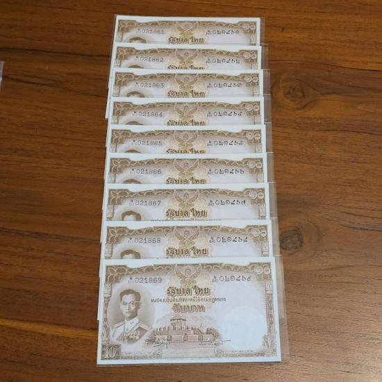 ธนบัตร รัชกาลที่ 9 ชนิดราคา 10บาท แบบ 9 (โทมัส) สภาพสวยเลขเรียง สภาพสวย ไม่มีรอยพับ รอยย่น