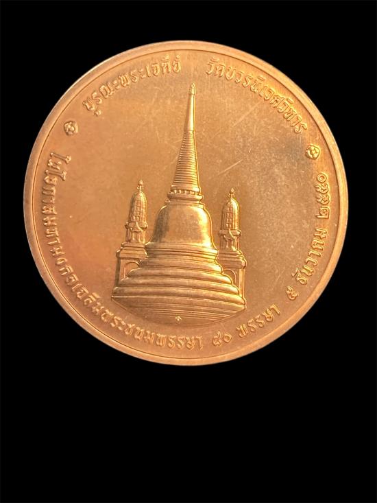 รายละเอียด เหรียญ ในหลวง ร.9 ทรงผนวช วัดบวรนิเวศวิหาร รุ่นบูรณเจดีย์ เนื้อทองแดง ปี 2550 สภาพ UNC ไม่ผ่านการใช้ สวยชัด + ตลับเดิม