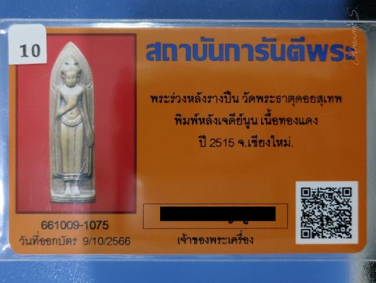 พระร่วงหลังรางปืน พิมพ์หลังเจดีย์นูน วัดพระธาตุดอยสุเทพ หลวงพ่อกวยร่วมปลุกเสก ปี15 |