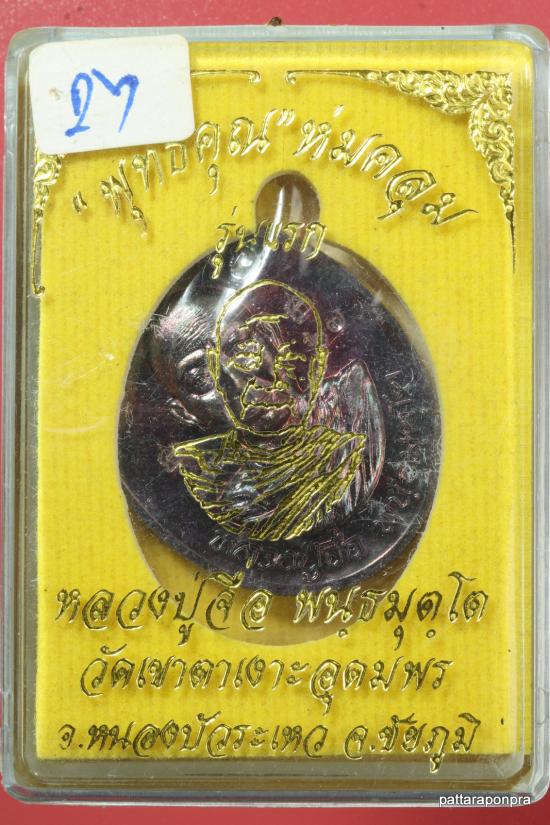 เหรียญหลวงปู่จื่อ รุ่นพุทธคุณ ปี 2558 เนื้อสัตตะผิงรุ้ง แจกทาน หมายเลข 27 |