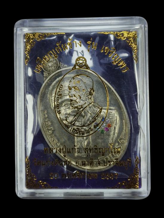 เหรียญเจริญพร หลวงปู่แก้ว วัดแก่งดินสอ อ.นาดี จ.ปราจีนบุรี เนื้ออัลปาก้าฝังพลอยที่จีวร สวยมากๆกล่องเดิม 100 แดงครับ