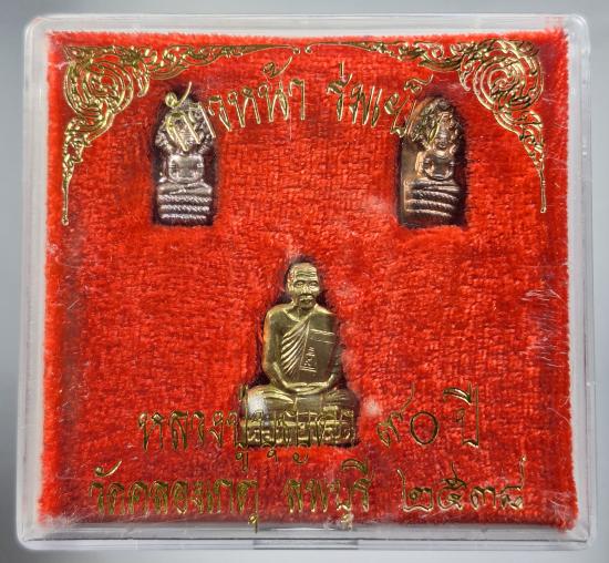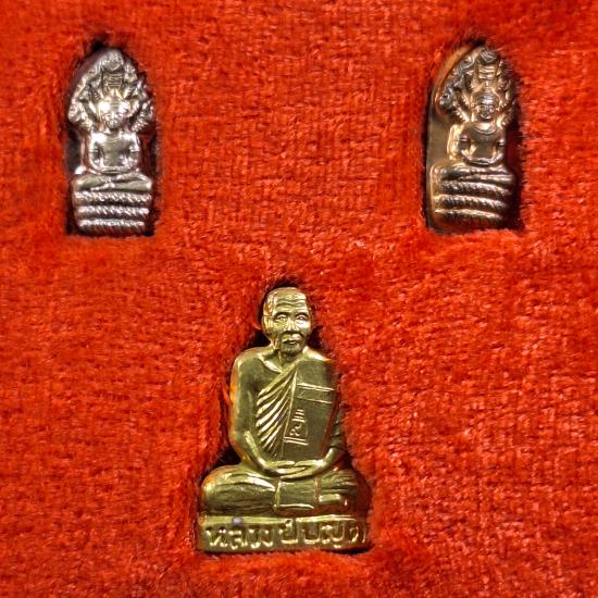 ชื่อพระเครื่อง หลวงปู่บุญตา วัดคลองเกตุ ลพบุรี ก้าวหน้า ร่มเย็น ชุดกรรมการ 3 องค์ ปี 2538