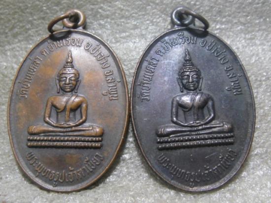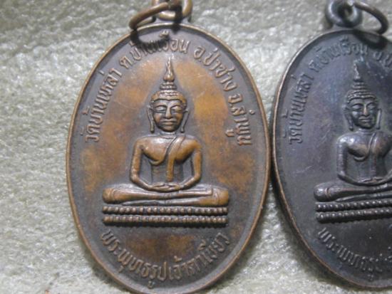 วัดใจเคาะเดียว......100.......เหรียญพระพุทธรูปเจ้าตาเขียว วัดบ้านเหล่า จ.ลำพูน รุ่นปิดทอง ปี2534 สวย รวม 2 เหรียญ
