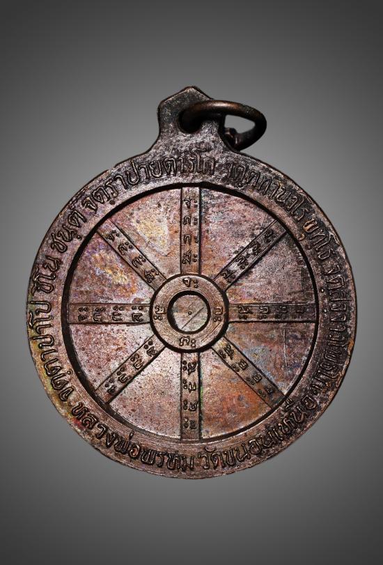 เหรียญ ธรรมจักรมหายันต์ ( ชูดวง ) " หลวงพ่อพรหม วัดขนอนเหนือ " จ.อยุธยา ปี 2530 เนื้อทองแดง หายากมาก รุ่นนี้หลวงพ่อท่านตั้งใจปลุกเสก ลงคาถาและอักขระยันต์เพื่อชูดวง หนุนชะตาชีวิต เป็นเหรียญที่หลวงพ่อพรหมมอบหมายให้นักธุรกิจด้านอสังหาริมทรัพย์ไปจัดสร้างเนื่องจากได้ประสบความสำเร็จด้านธุรกิจตามที่หลวงพ่อเมตตาชี้แนะ