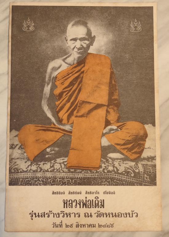 ***เคาะเดียว***ภาพพิมพ์หลวงพ่อเดิม วัดหนองโพธิ์ รุ่นสร้างวิหาร ปี2489 ขนาดบ ูชา 7x11 นิ้ว