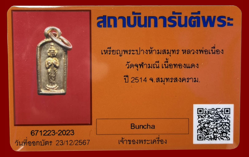 เหรียญพระประจำวัน พิมพ์พระปางห้ามสมุทร(วันจันทร์) ปี2514 หลวงพ่อเนื่อง วัดจุฬามณีฯจ.สมุทรสงคราม เนื้อทองแดงผิวไฟ