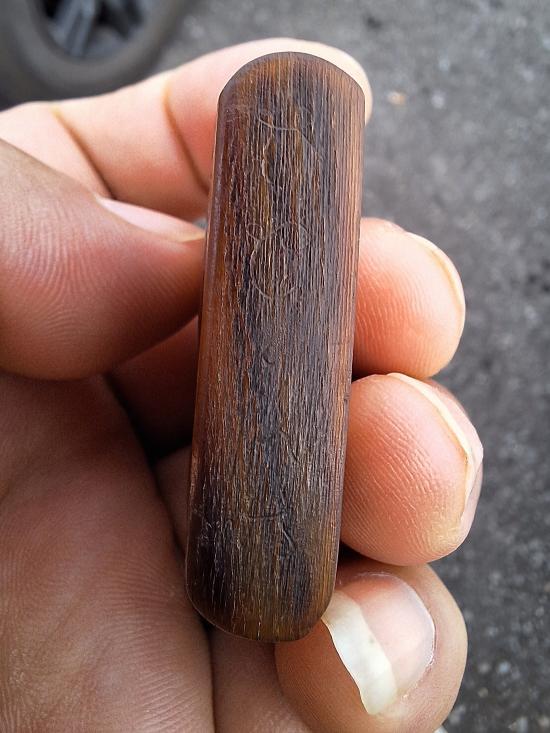 สิงห์ขนาดใหญ่ แกะจากเขา มีรอยจาร เนื้อเก่าๆ |