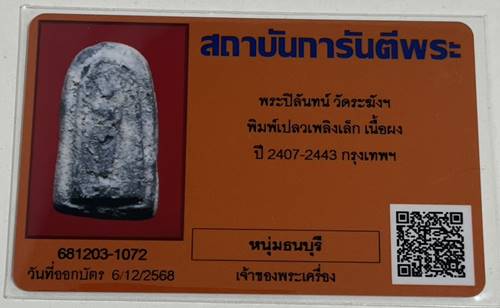 ชื่อพระเครื่อง พระสมเด็จปิลันท์ วัดระฆัง พิมพ์เปลวเพลิงเล็ก เนื้อผง ปี 2407-2443 พระสวยผิวเดิมสมบูรณ์พร้อมบัตรครับ