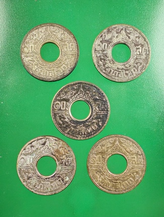 ## เคาะเดียว ## 5เหรียญ เหรียญ 10 สตางค์รู เนื้อเงิน ปี 2484 ครับ