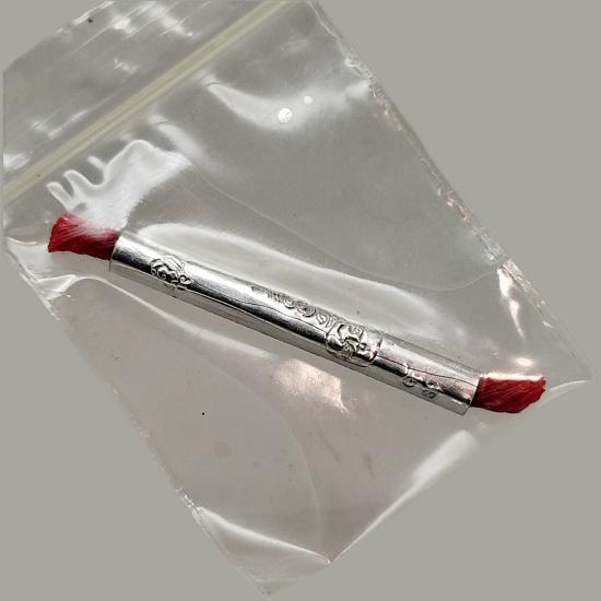 ตะกรุดสมฤดี เนื้อเงิน จารยันต์สาริกาป้อนเหยื่อ สร้างจำนวน 150 ดอก สอดตะกรุดด้วยเชือกอาถรรพ์ แช่น้ำมันพรายดอกทอง ปลุกเสกในคืนจันทร์ซ้อนจันทร์