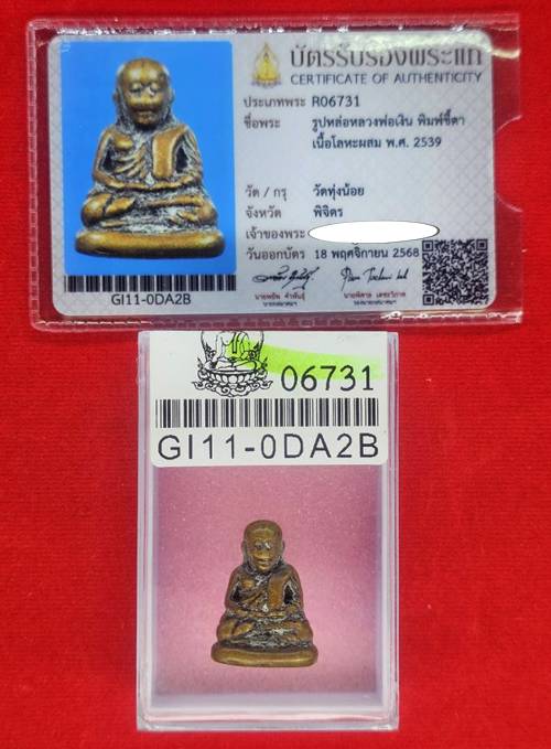 รูปหล่อ หลวงพ่อเงิน พิมพ์ขี้ตา วัดทุ่งน้อย เนื้อโลหะผสม ปี2539 พร้อมบัตรรับรองสมาคมพระเครื่องพระบูชาไทย