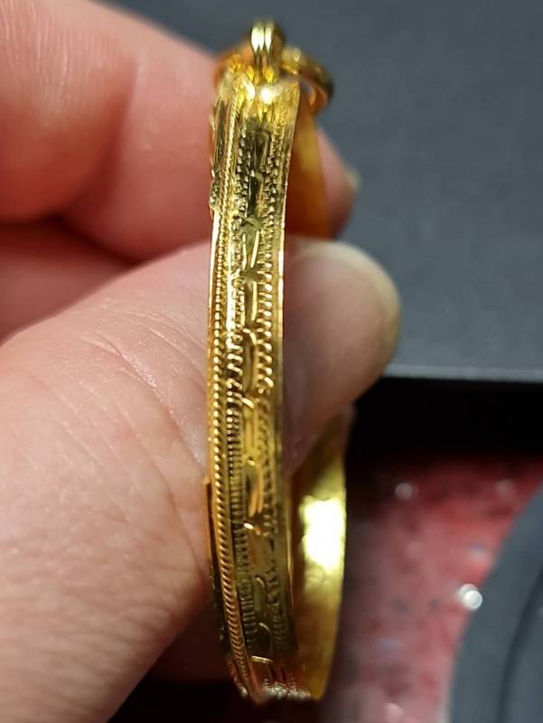 (((กรอบมือ2 ทองคำแท้))) ใส่เหรียญเจริญพร หลวงปู่บัว และเหรียญรูปไข่ขนาดใหญ่ทั่วไป น้ำหนักทอง 7.14กรัม กรอบสภาพสวยๆครับ