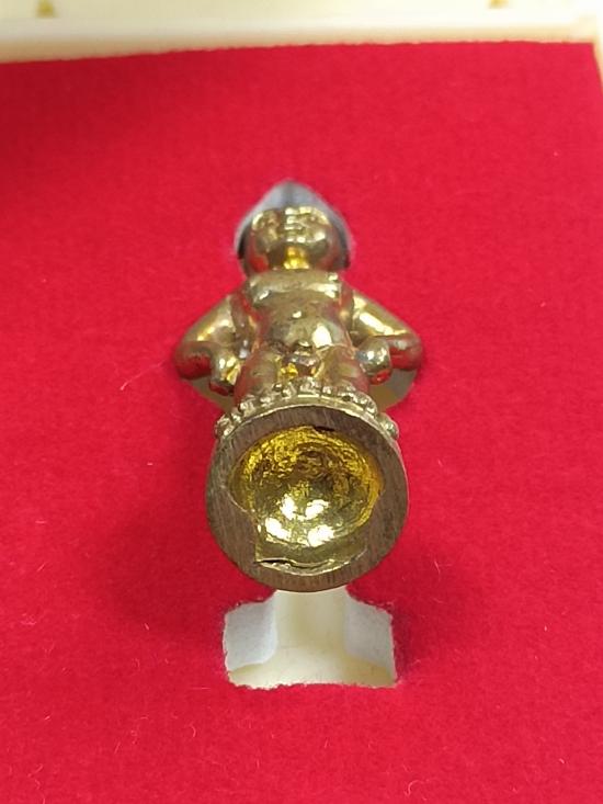 " วัดใจ เคาะเดียวแดง " กุมารแดง เด็กสุสานร้าง รุ่นแรก (สำนักสงฆ์ร้างพระอาจารย์ซ่วน) วัดท่าลาดใต้ จ.ฉะเชิงเทรา ปี 63 เนื้อฝาบาตรขัดเงา หมายเลข 447 (่ขนาดสูงประมาณ 3.5 ซม.) ผิวหล่อไม่เต็ม ไม่เรียบนะครับบางจุดมีคราบดำ บางจุดไม่มีคราบดำจะเป็นหลุม ทั้งหน้า-หลัง เดิมๆมาครับ