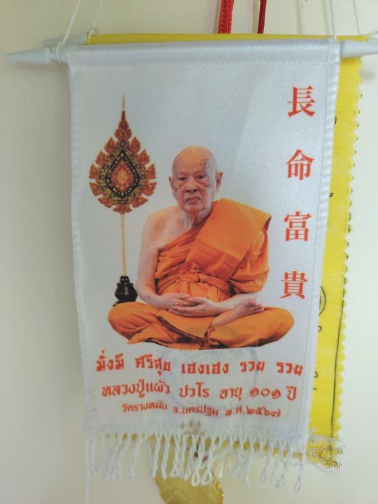 ผ้ายันต์แขวนหน้ารถ หลวงปู่แผ้ว วัดรางหมัน |