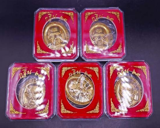 !!!!วัดใจ 9 บาท!!!! รับ 5 องค์ เหรียกฐินหน้ายักษ์ เนื้อทองฝาบาตร หลวงพ่อรวย วัดตะโก จ.อยุธยา ปี63 พร้อมกล่อง จำนวน 5 เหรียญ