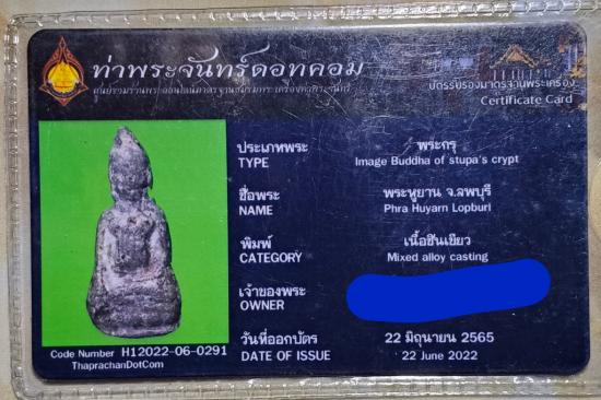 พระหูยาน กรุวัดพระศรีรัตนมหาธาตุ ลพบุรี เนื้อชินเขียว ดูง่าย มีบัตรรับรองท่าพระจันทร์