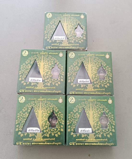 พระพุทธชินราช เนื้อผง พุทธชยันตี 2600 ปี พระพุทธเจ้าตรัสรู้ 84 พรรษา พระบาทสมเด็จพระเจ้าอยู่หัว รัชกาลที่ 9 จำนวน 5 กล่อง เลข 59252 59253 59255 59279 59280