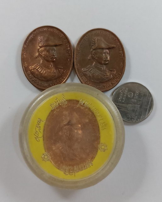 เหรียญสมเด็จพระปิยะมหาราช(เสด็จพ่อร.๕) หลวงพ่อทวีศักดิ์ ชุตินธโร(หลวงพ่อเสือดำ) วัดศรีนวลธรรมวิมล สร้างร.พ. ตึก 7 ชั้น ปี 2535 สวยครับ ทีเดียว 3 เหรียญ