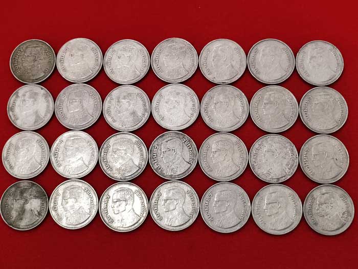 วัดใจ 100 เดียวแดง ++ เหรียญ 5 บาท หมุนเวียนหลังครุฑ ปี2520 (28 เหรียญ) + ปี2522 (54 เหรียญ) สภาพผ่านใช้งาน