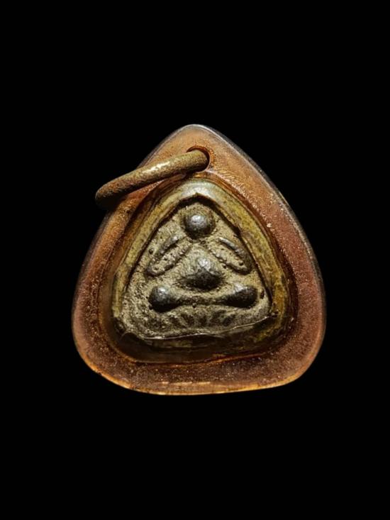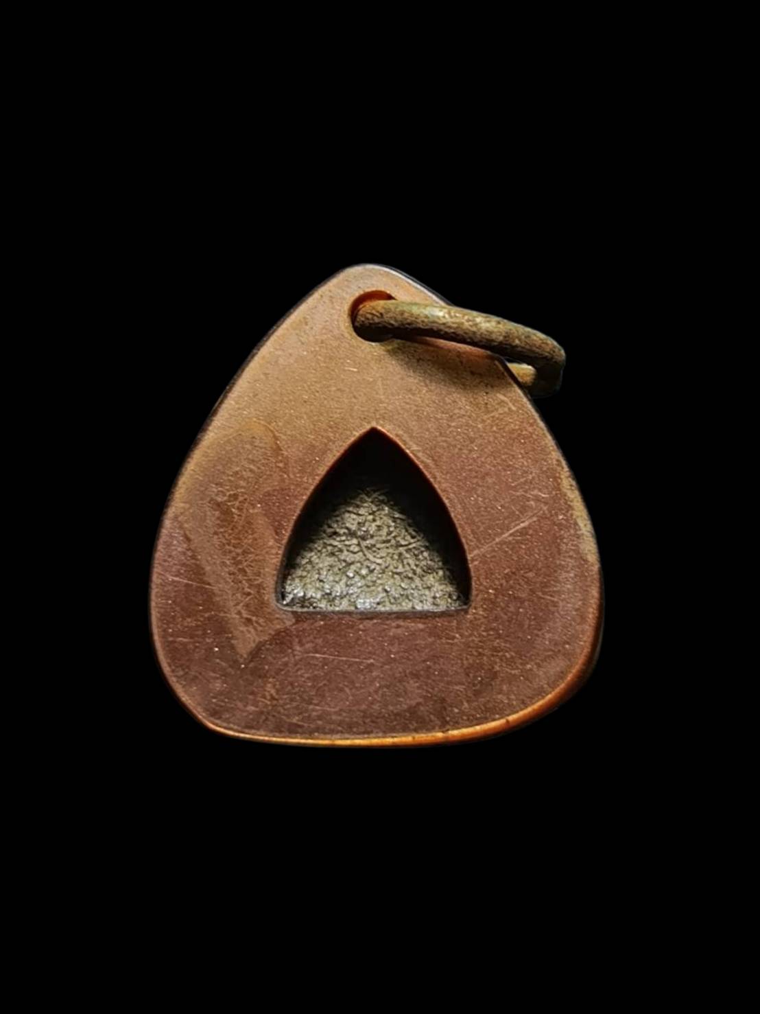 พระปิดตาเนื้อโลหะ เลี่ยมกรอบน้ำตาล ตัดหน้าหลัง เคาะเดียว