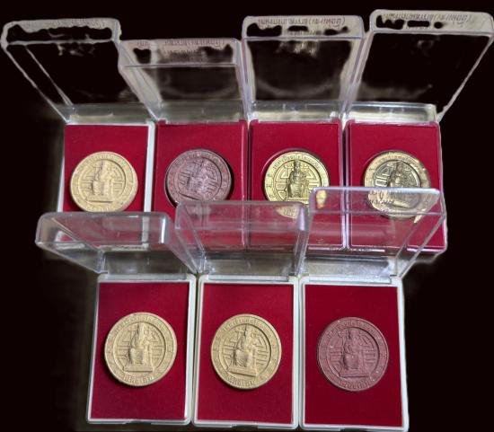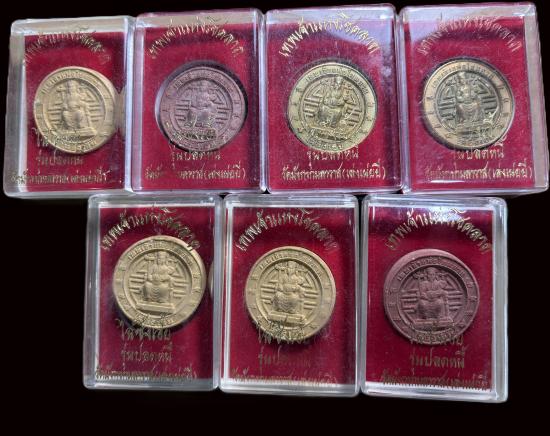 7 องค์ เหรียญเทพเจ้าไฉ่ซิงเอี้ย เทพเจ้าแห่งโชคลาภ พิมพ์ใหญ่ รุ่นปลดหนี้ วัดเล่งเน่ยยี่ ปี 2545 พร้อมกล่องเดิมจากวัด