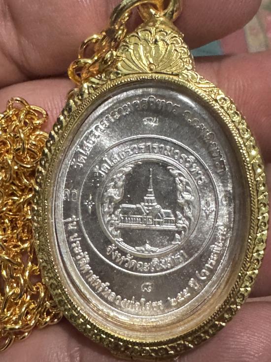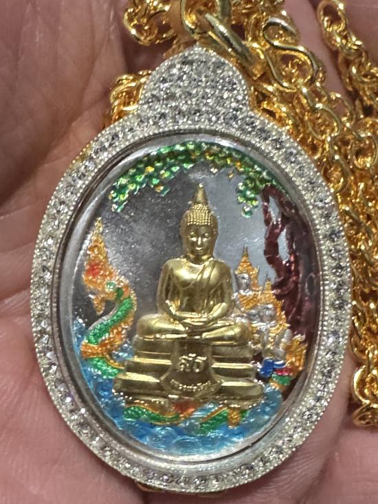 เหรียญหลวงพ่อโสธร เนื้อเงินลงยาเครื่องทรงหน้ากากทองคำแท้ หมายเลข 8 เลี่ยมกรอบทองอิตาลีพร้อมสร้อยทองอิตาลี