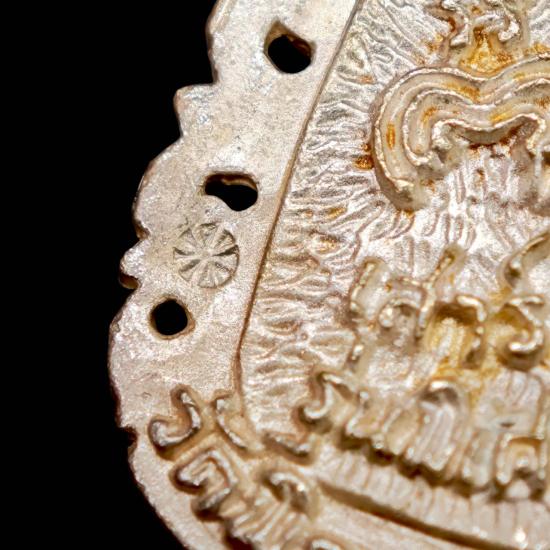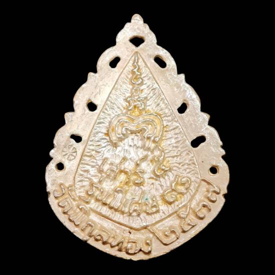 หลวงพ่อแพ วัดพิกุลทอง พิมพ์หยดน้ำลายฉลุ ปี2537 เนื้อเงิน พร้อมกล่องเดิม