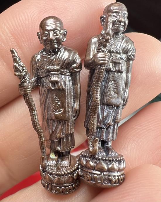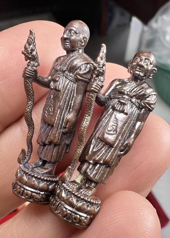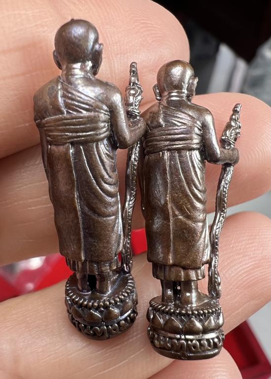 รูปหล่อยืนถือไม้เท้า อุดผงใต้ฐาน หลวงปู่หงษ์ พรหมปัญโญ สุสานทุ่งมน จ.สุรินทร์ ปี 2555 D1 |