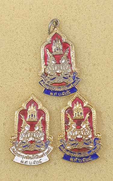 เหรียญ + เช็มกลัด 2 องค์ สมโภชกรุงรัตนโกสินทร์ 200 ปี พ.ศ. 2525 + เหรียญ ยี่สิบห้าศตวรรษ 2 เหรียญ |