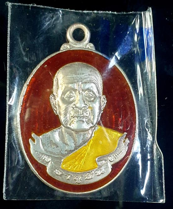 เหรียญห่วงเชื่อม"รุ่นอายุยืน" ล.ป.บุญหนา เนื้อเงินลงยาสีแดง เลข#๑๐๓ +โค้ตจีนด้านหลัง พร้อมกล่องเดิม