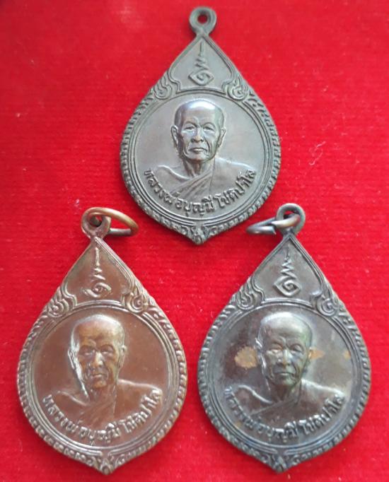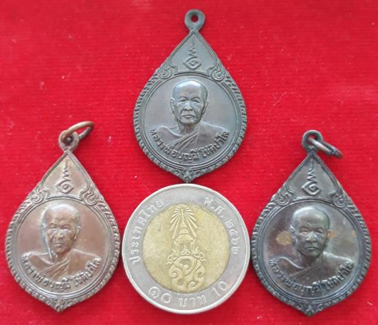 เหรียญหลวงพ่อบุญมี วัดสระประสานสุข ปี 2530 เนื้อทองแดง 3 เหรียญ เคาะเดียวแดง