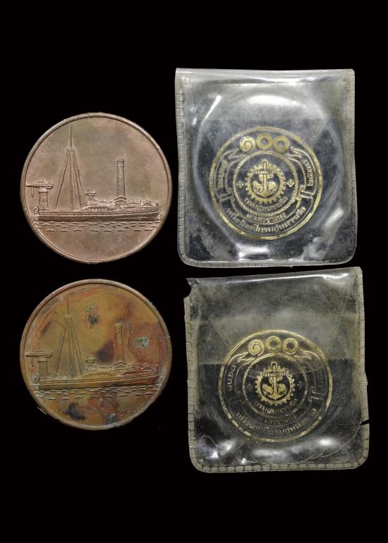 เหรียญกรมอู่ทหารเรือ พระบาทสมเด็จพระจุลจอมเกล้าเจ้าอยู่หัวทรงกระทำพิธีเปิดอู่หลวง 100 ปี กรมอู่ทหารเรือ ปี2533 ((( เนื้อทองแดง 4 ซม. ))) เก่าเก็บในซองเดิม ผิวเดิม *ซองกรอบแตก*