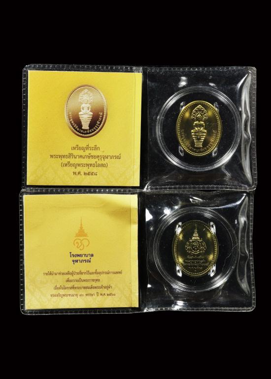 เหรียญที่ระลึกพระพุทธสิรินาคเภษัชยคุรุจุฬาภรณ์ 2558 ((( 2 เหรียญ แพคเดิม ))) เนื้อทองเหลือง ไม่ผ่านใช้