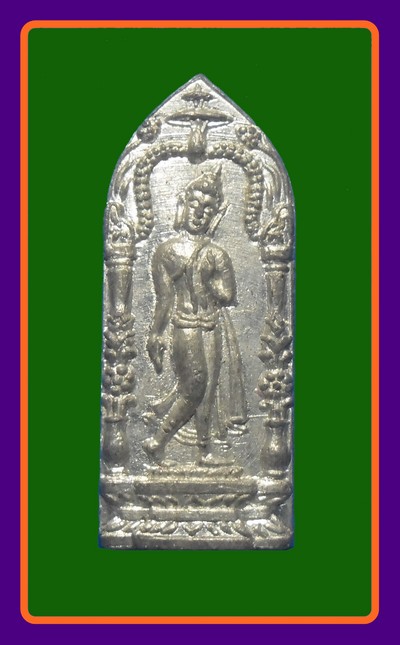 พระลีลากำแพงนิ้วซุ้มแจกัน เนื้อชินตะกั่ว หลวงพ่อฑูรย์ วัดโพธินิมิตร ตลาดพลู จ.กรุงเทพฯ จัดสร้าง ปี 2512