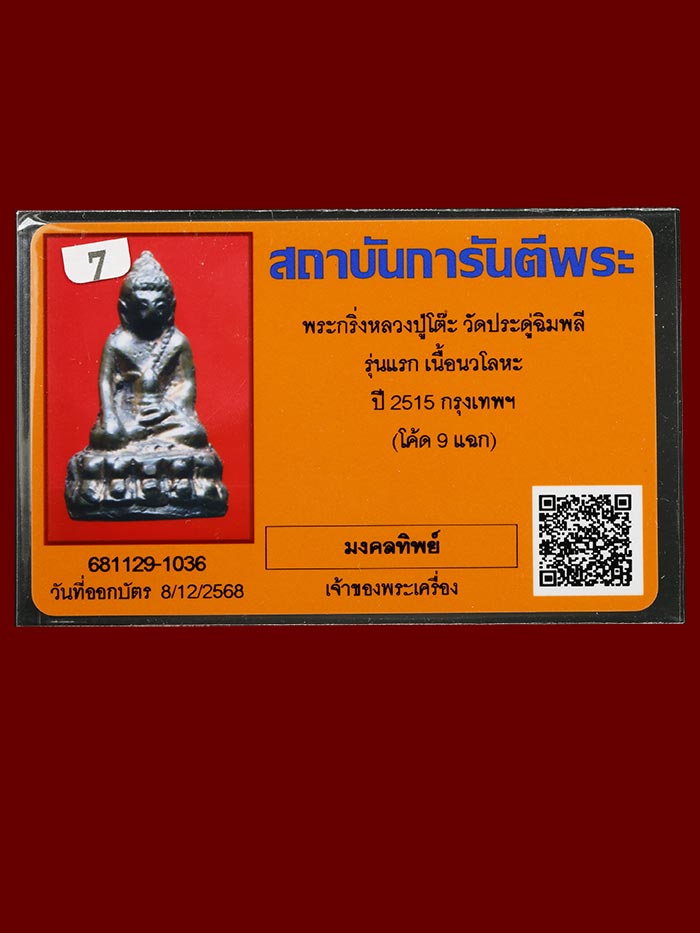 พฤ. - 11 ธ.ค. 2568 - 20:27:48 น. (Auto bid) |