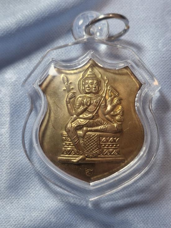 เหรียญพระพรหมสี่หน้าหลวงพ่อชำนาญวัดชินวรารามพิมพ์โล่ใหญ่เนื้อทองแดงปี 2561 มีจารหลวงพ่อทั้งหน้า-หลัง