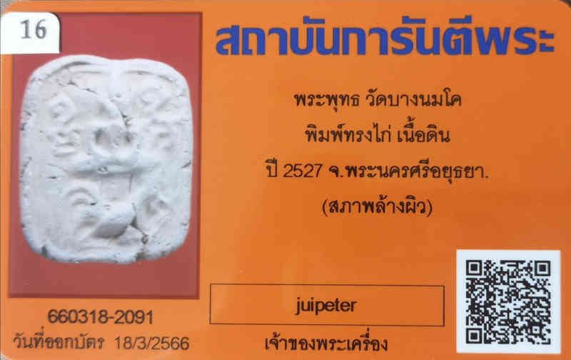 พระเนื้อดินพิมพ์หลวงพ่อปานทรงไก่นิยมสุด ผงอุดเดิม ๆ วัดบางนมโค ปี 2527 พร้อมบัตรรับรอง