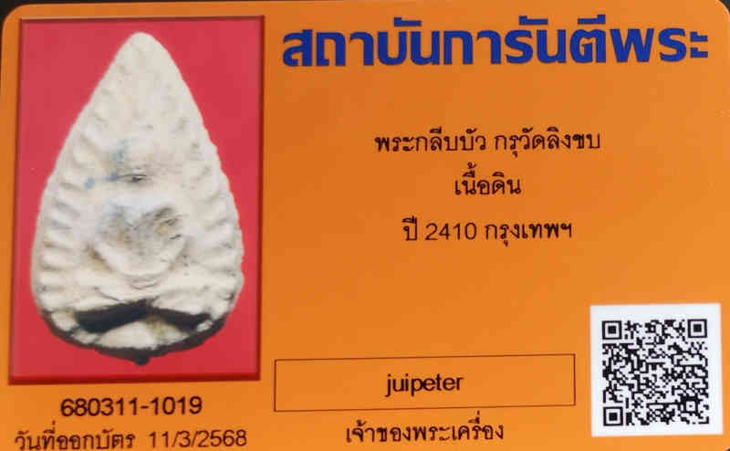 พระกลีบบัว กรุวัดลิงขบ เนื้อดิน ปี 2410 พร้อมบัตรรับรอง