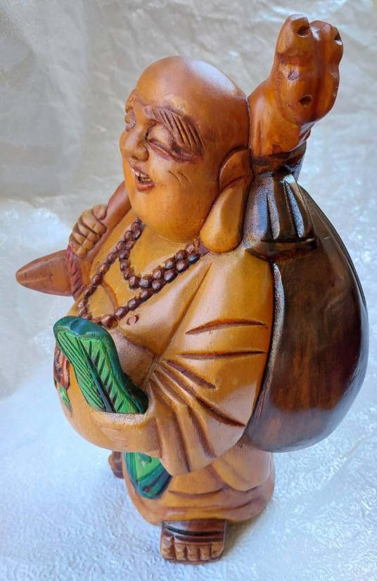 พระสังกัจจายน์ แกะสลักจากไม้ไม้ศักดิ์สิทธิ์ในสมัยโบราณ สูง 12 นิ้ว หนัก เกือบ2โล เพ้นสี