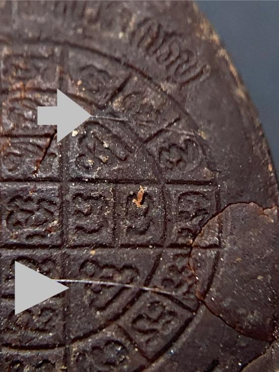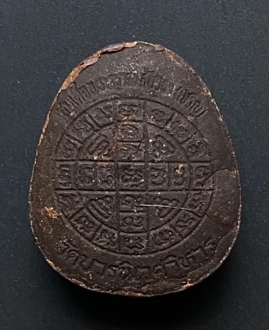 พระปิดตายันต์ดวงเล็ก ปี2523 สมเด็จพระญาณสังวร (เจริญ) วัดบวรนิเวศ_(เนื้อผงเกสร ๑๐๘ ชนิด)_พิมพ์หนา_มีเส้นเกศา_