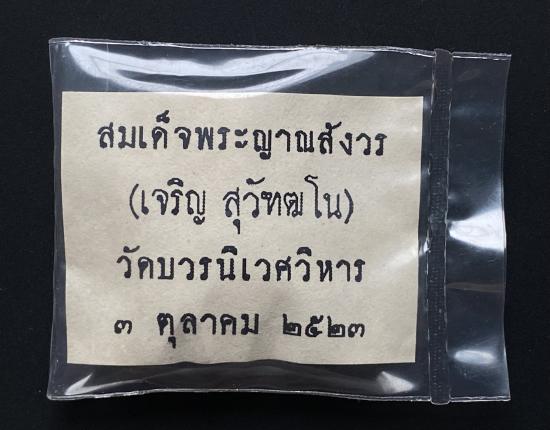 พระปิดตายันต์ดวงเล็ก ปี2523 สมเด็จพระญาณสังวร (เจริญ) วัดบวรนิเวศ_(เนื้อทูโทน_หน้าเกสร~หลังใบลาน)_ซีลถุงเดิม_มีใบโพย_