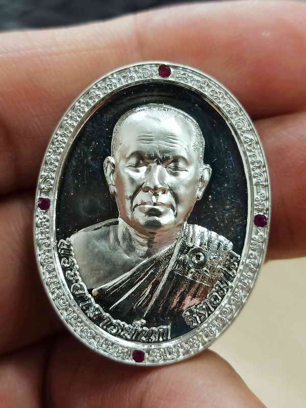 วัดใจ 100 เหรียญรวยมหาเศรษฐี กฐินสามัคคี พระอาจารย์นก วัดเขาบังเหยชุมพลสีมาราม อ.เทพสถิต จ.ชัยภูมิ ปี 2566 รก.33 ชุบเงินจิวเวอรี่ ฝังพลอยแดง หมายเลข 103 กล่องเดิม |