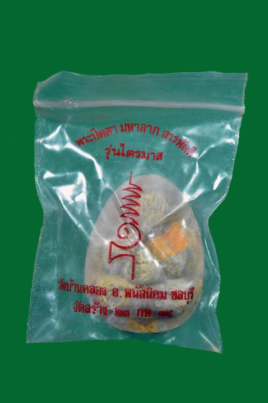 พระปิดตาหลวงพ่อคูณ รุ่นสารพัดดี หน้าฝังตะกรุด ติดจีวรเก่า ด้านหลังฝังพระนาคปรก ออกวัดบ้านคลอง ชลบุรี ปี 2538 สภาพสวย มาในซองเดิมๆ น่าสะสม