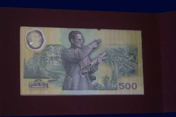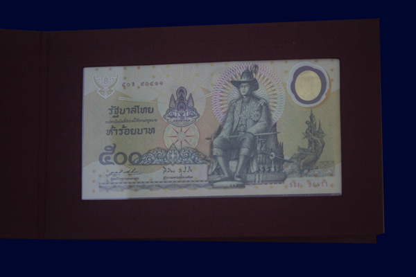 ธนบัตรที่ระลึกเฉลิมพระเกียรติ รัชกาลที่ 9 ปีกาญจนาภิเษก พ.ศ.2539 พร้อมเล่มผ้าไหม(ขาดคู่มือ) |