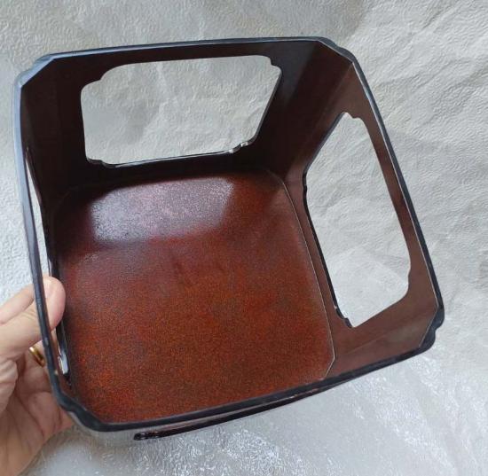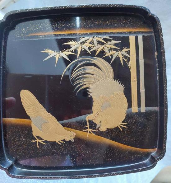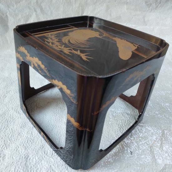 *ชุดขาตั้งไม้ญี่ปุ่นเคลือบแลคเกอร์ งานไม้พื้นดำลวดลายทองสวยงาม ขนาด 18*18 สูง 15 ซม.