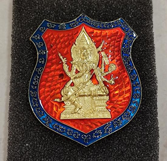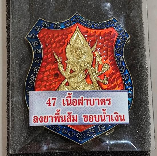 เหรียญท้าวมหาพรหม รุ่นเจ้าสัวพันล้าน(บอย ท่าพระจันทร์) เนื้อฝาบาตรลงยาพื้นส้มขอบน้ำเงิน เลขโค๊ต ๑๗๓๙ พร้อมกล่องเดิม |