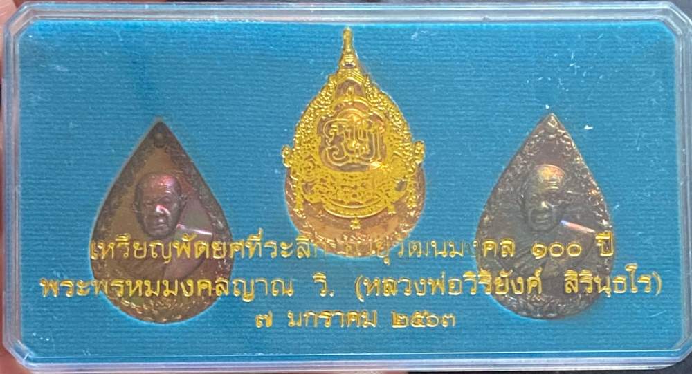 เหรียญที่ระลึกอายุวัฒนะมงคล 100 ปี หลวงพ่อวิริยังค์ วัดธรรมมงคล ชุดกรรมการ3เหรียญ ตอกโค๊ตเลขเหรียญ สวยมาก ปี 2563 |