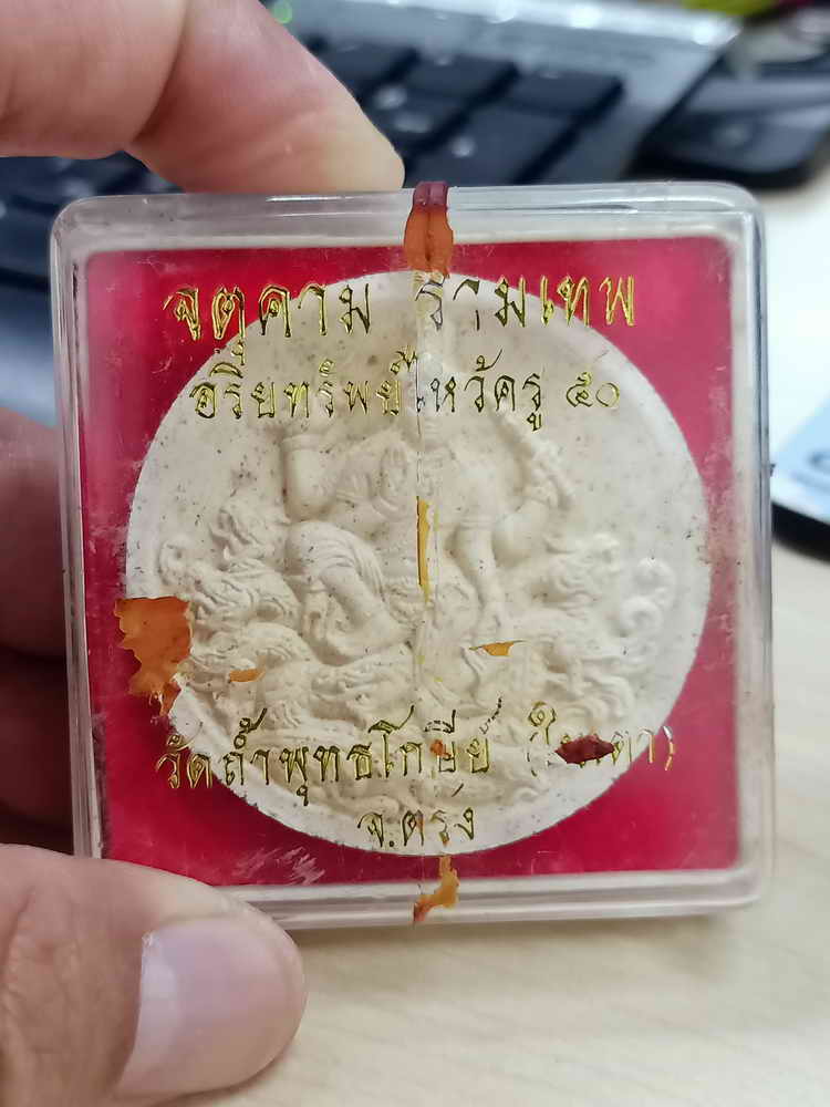 อายุกว่า 1,200 ปี ประทับไว้ด้านหลังทรงน้ำตาลแว่น ร่น " อริยทรัพย์ ไหว้ครู50