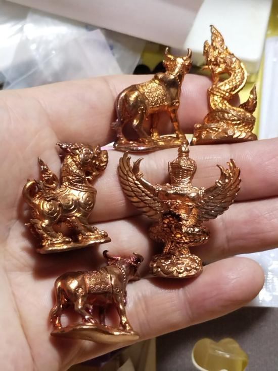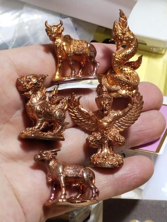 พญาครุฑสุบรรณราช,พญานาคทิพยภุชงค์ ,สิงห์สีหราช,โคอุสุภราช,กระบือทิพยกาสร สัตว์ทรงเทวดานพเคราะห์ประจำวันเกิด หลวงพ่อพร วัดป่าธรรมโสภณ จ.ลพบุรี เนื้อทองแดงรวม5องค์